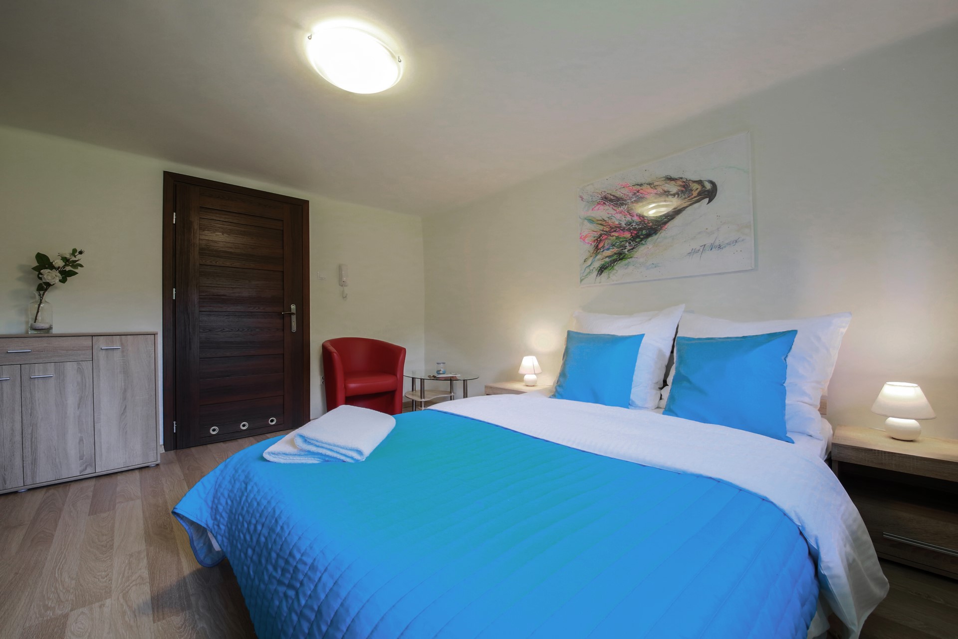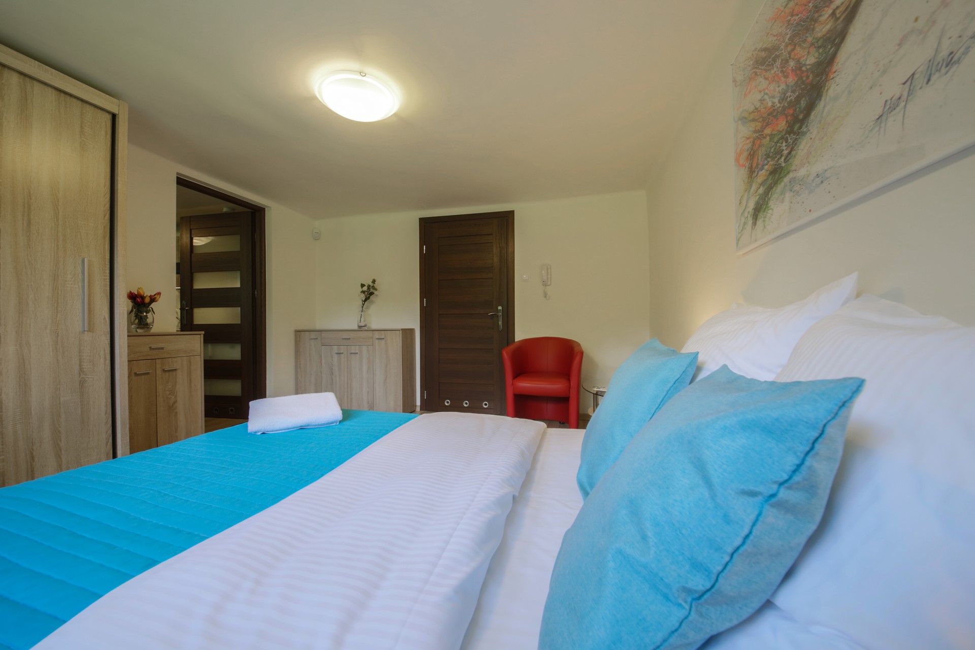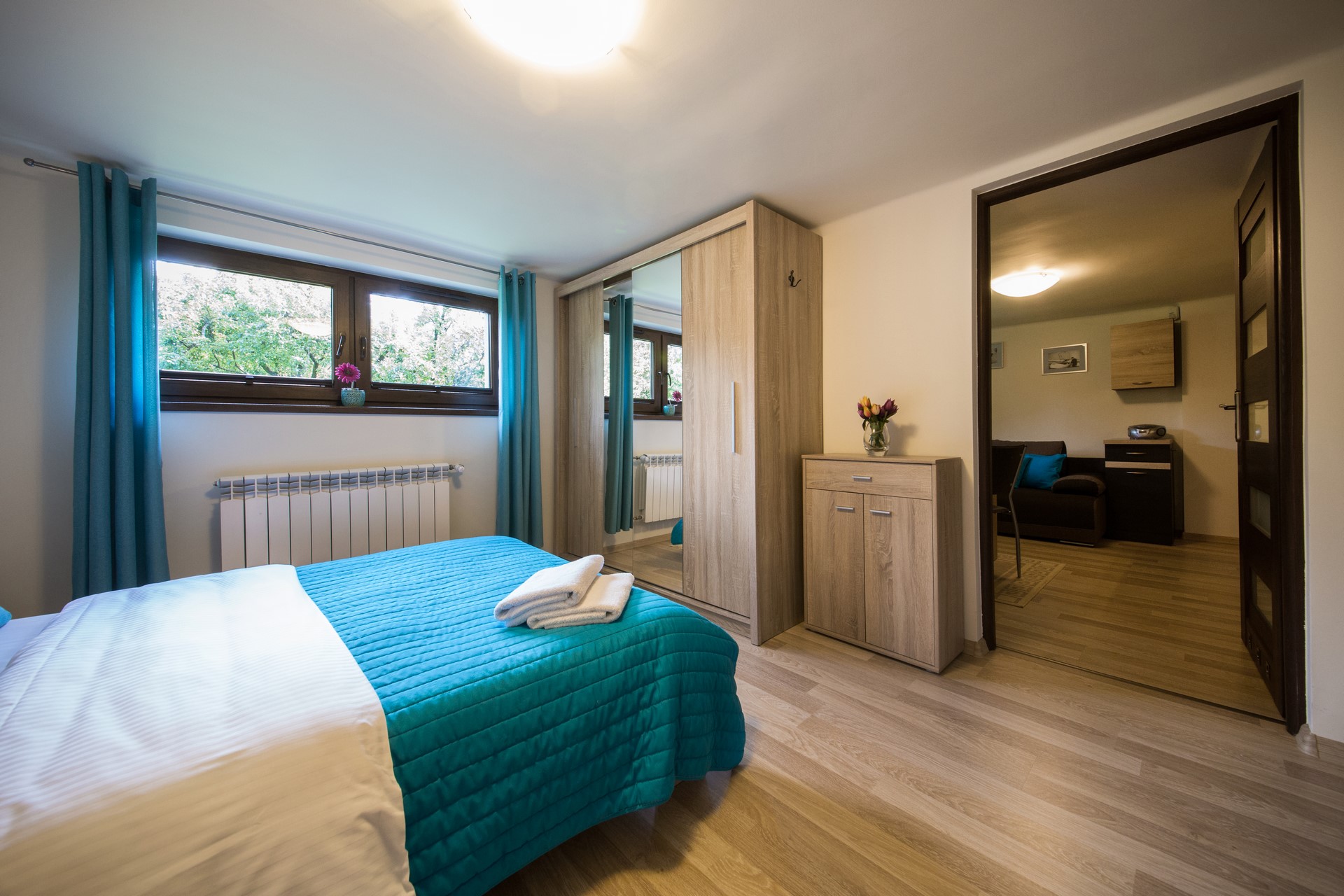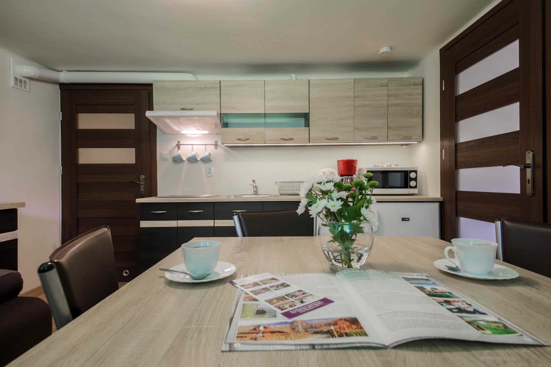 Nowoczesny, komfortowy apartament na parterze o powierzchni 30 m2, mogący pomieścić maksymalnie 6 osób. Idealnie sprawdzi się na wyjazd dla dwojga. Szczególnie polecany osobą starszym, ze względu na swoje dogodne usytuowanie. Jako jedyny w naszym obiekcie posiada łazienkę z wanną.