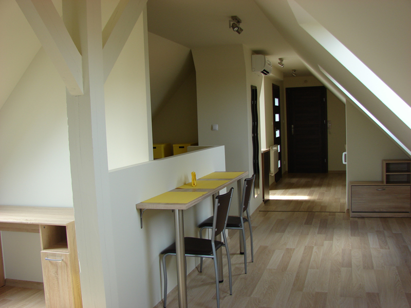 Apartament Junior został stworzony w nowoczesnym stylu, gdzie przytulność przeplata się z grą światła. Jest to doskonałe miejsce dla młodych małżeństw, par, ale także singli szukających wypoczynku w klimatycznych przestrzeniach.