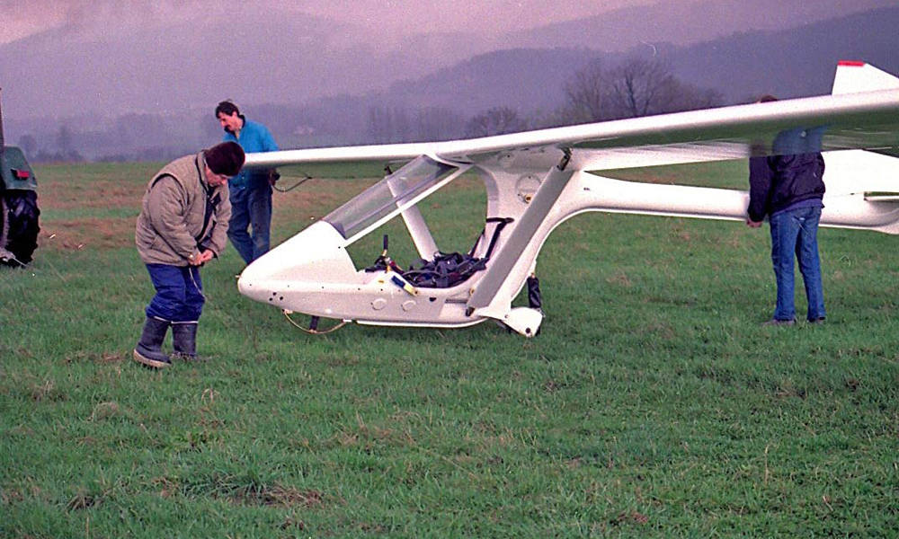 W marcową niedzielę 1976 roku wykonałem lot na lotni ze Skrzycznego do dolnej stacji wyciągu krzesełkowego w towarzystwie Kazia Duca pilotującego zakładowego Gawrona.
